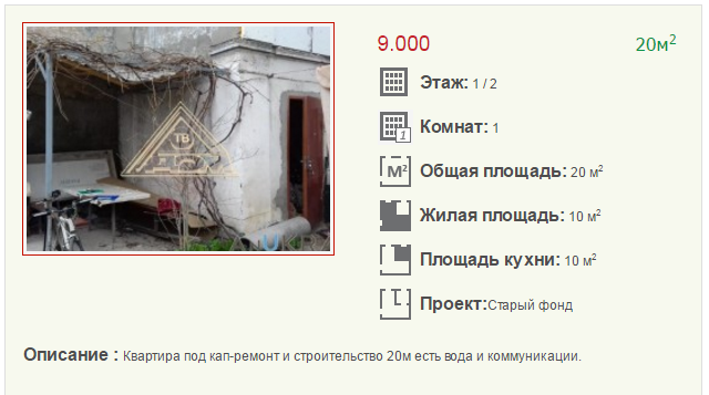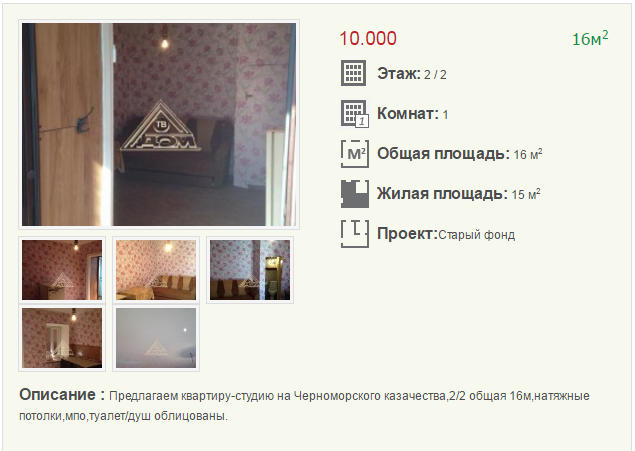 Самая дешевая 1-комнатная квартира продается за 10 000 $, улица Черноморского Казачества.