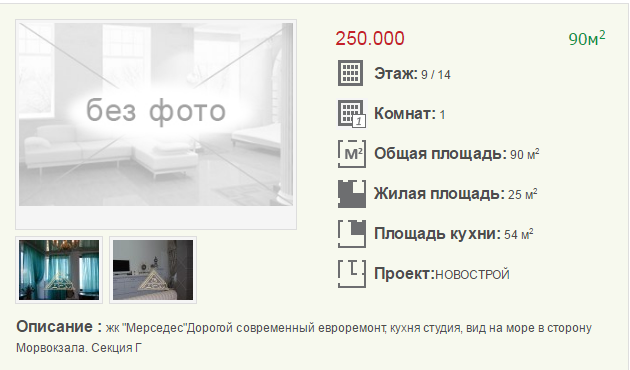 Самая дорогая 1-к квартира продается за 250 000 $, Лидерсовский бульвар.