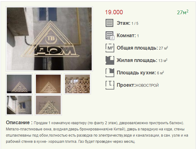 Самая дешевая 1-к квартира продается за 9 000 $, улица Мастерская.