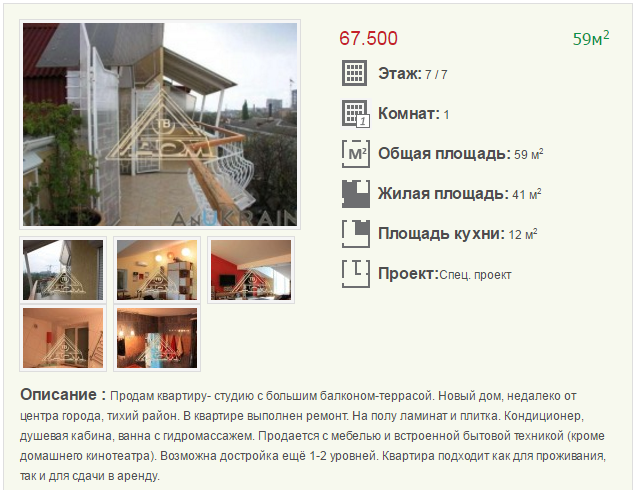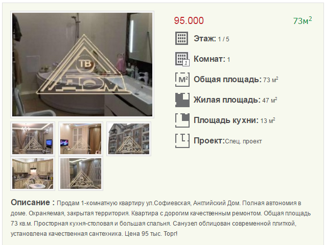 Самая дорогая 1-комнатная квартира продается за 95 000 $, улица Софиевская.